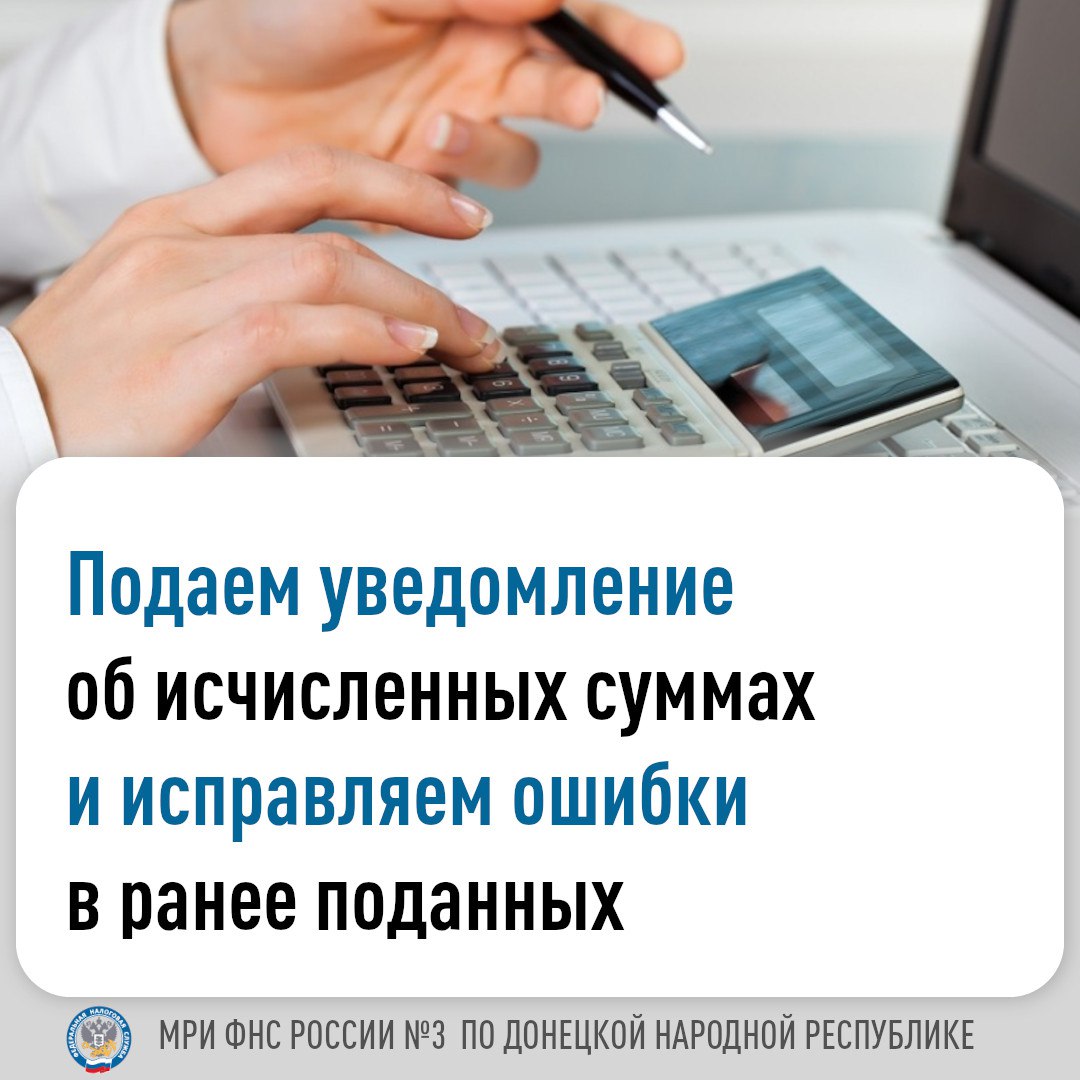 🔖 МИФНС России №_3 по Донецкой Народной Республике напоминает, что распределение платежей с ЕНС осуществляется на основании представленной отчетности. Если срок ее подачи наступает позже, чем срок уплаты обязательств, либо отчетность не предусмотрена законодательством, налогоплательщики представляют уведомление об исчисленных суммах налогов, авансовых платежей по налогам, сборов, страховых взносов (Уведомление).
